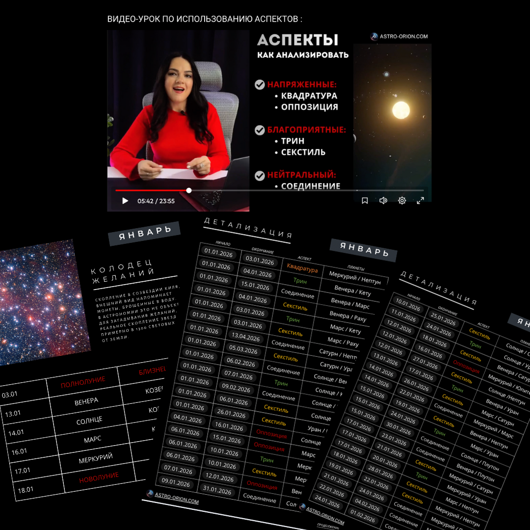 ✔ ВИДЕО-УРОК (24 минуты) по анализу аспектов и использованию календаря с примерами трактовок.