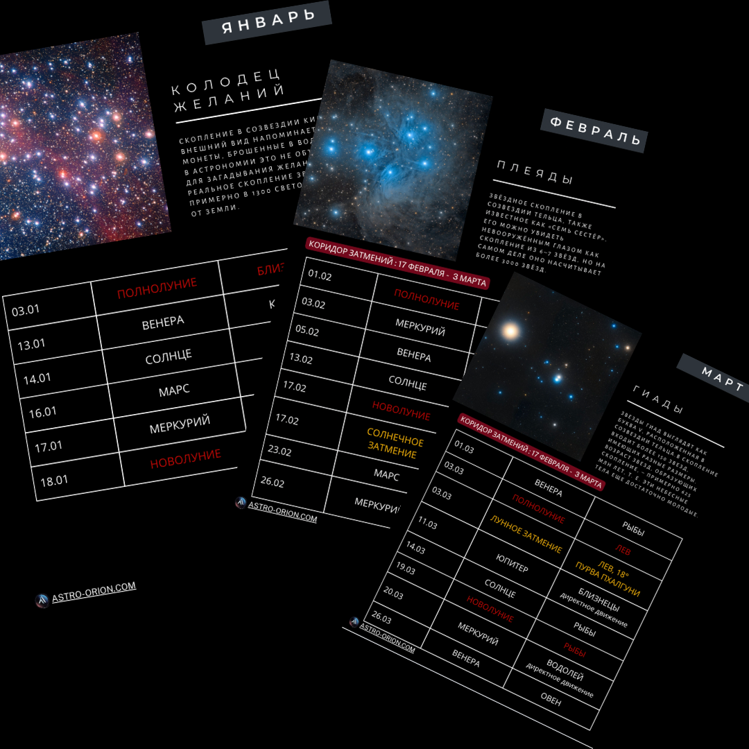 ✔ Детализация аспектов с точными датами для каждого месяца: трин, квадратура, секстиль, оппозиция, соединение